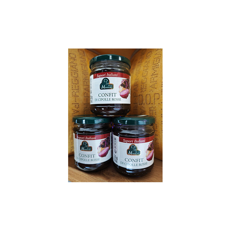 Składniki: Czerwona cebula 60%, cukier, wino Barbera d'Alba DOC, oliwa z oliwek extra virgin, ocet balsamiczny z Modeny IGP (gotowany moszcz winogronowy, ocet winny) 3%, sól, substancja żelująca: pektyna. Po otwarciu przechowywać w lodówce przez 4-5 dni.