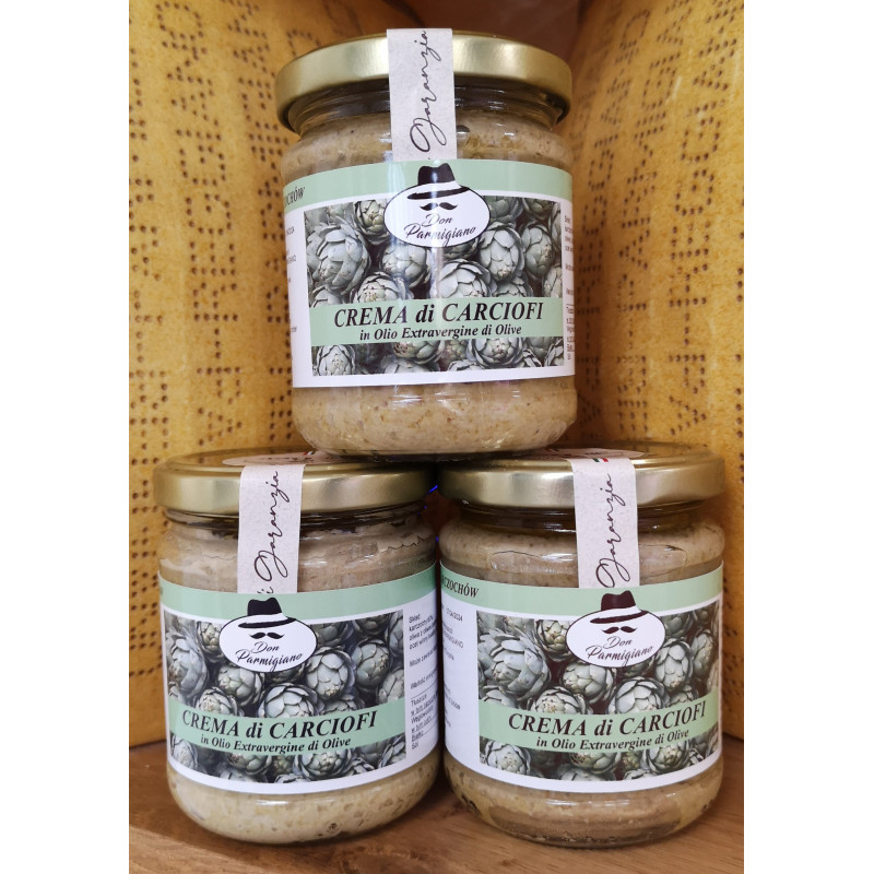 Krem z karczochów w oliwie z oliwek extravergine (Taggiasca). Prawdziwie włoski smak. Znakomity dodatek do włoskich makaronów. Świetnie komponuje się z szynką parmeńską z dodatkiem Parmigiano Reggiano DOP lub Pecorino Romano DOP zapiekane w toście lub naleśniku.
