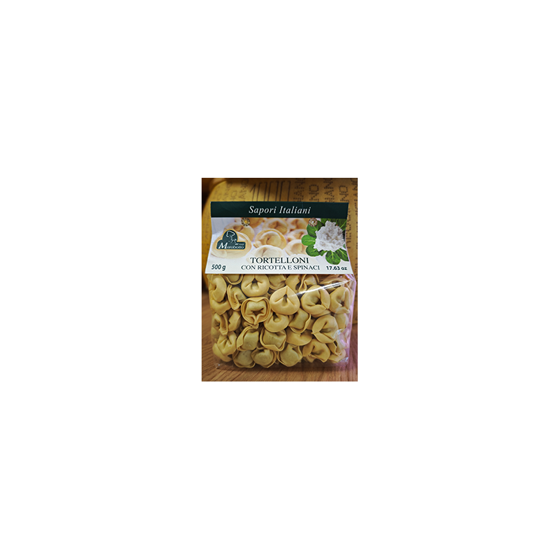 Skład: makaron 72% mąka z pszenicy durum, jaja (19% na makaron), nadzienie 28%: bułka tarta (mąka pszenna typu „0” , sól), ricotta 21,5% (mleko, serwatka mleka, sól), szpinak 14,3, margaryna (olej kokosowy, oleje roślinne (słonecznikowy, sojowy, rzepakowy), woda, ser topiony w proszku (mleko, serwatka, sól, enzymy), sól, aromaty i zioła.