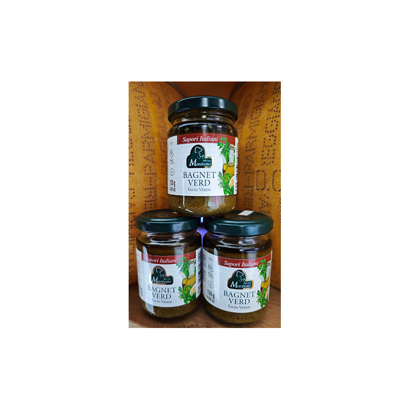 SKŁAD: pietruszka 39%, oliwa z oliwek extra virgin 26%, całe jaja 15%, papryka, anchois, włoskie pomidory, mąka z nasion gorczycy, ocet winny, chleb bezglutenowy (mąka kukurydziana, olej słonecznikowy, sól, naturalny aromat), cukier, kapary, sól, czosnek.